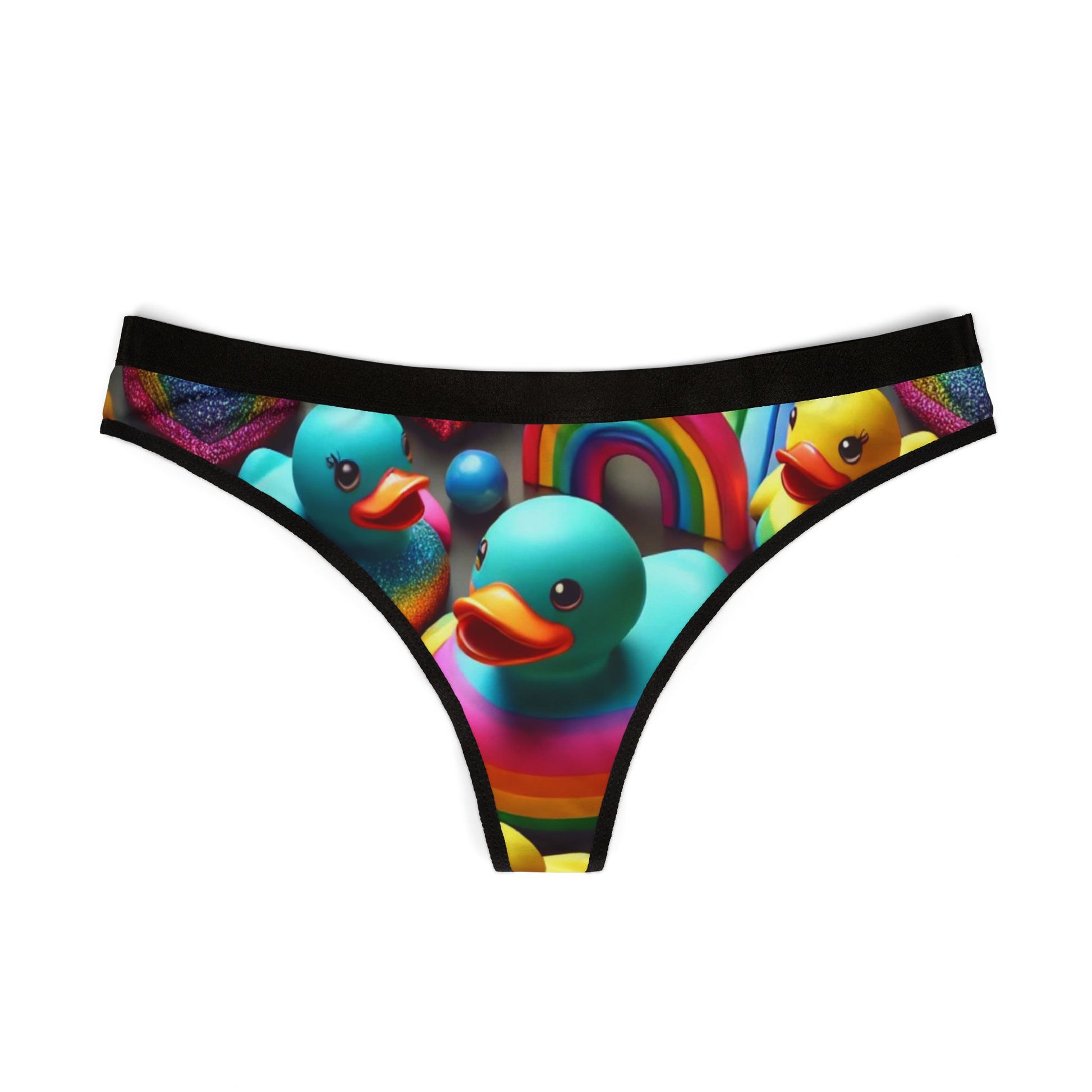Sparkle n Splash Rainbow Rubber Ducky Love Thong – Colorful Rainbow Duck Print | Soft, Breathable & Comfortable Pride Intimates